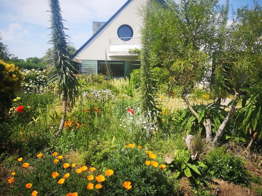 Chambre dans Maison fleurie et calme erbjuder en terrass och utsikt över trädgården och ligger i Ploemeur, 12 km från Stade du Moustoir och 15 km från Lorient Train Station.