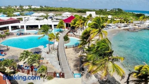 BIKINI & MARTINI Résidence MANGANAO Plage & Piscine privée har ett fitnesscenter, en gemensam lounge och en restaurang och erbjuder boende i Saint-François med gratis WiFi och utsikt över trädgården.