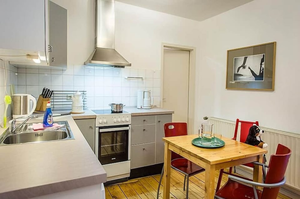 denna lägenhet ligger i Weimar. Albert Schweizer minnesplats och Weimar stadsslott är lokala sevärdheter, och vackra naturupplevelser kan du få i området kring Bauhaus och Naturpark Saale-Unstrut-Triasland. Rhododendronträdgård och Scharf ekologiska gård är också värda ett besök. Denna lägenhet ligger i Weimar, så här har du nära till allt. Schiller House Museum och Herzogin Anna Amalia Bibliothek ligger bara en kort promenad bort. Detta boende med 1 sovrum erbjuder sittutrymme och matsal. Laga till någon maträtt hemma i köket, som är komplett utrustat med ugn, spishäll och kylskåp, och du kan även hitta kaffebryggare, vattenkokare och grytor/köksredskap. Du behöver inte packa några extrakläder, eftersom det finns tvättmaskin.