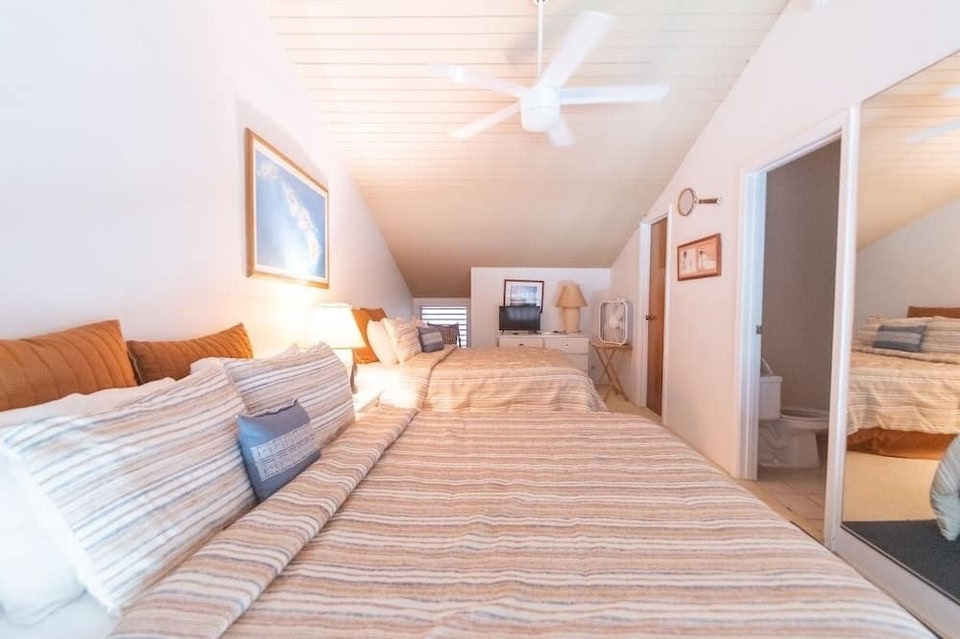 Denna lägenhet ligger bredvid en golfbana i Kahuku. Resenärer som vill uppleva lite kultur kan besöka Polynesian Cultural Center, och den som föredrar att uppleva områdets vackra natur kan utforska Sköldpaddsviken och Sunset Beach. Kahuku Farms och Waimea Arboretum and Botanical Garden är också värda ett besök. Passa på att utforska området med friluftsaktiviteter som cykelturer. Denna lägenhet där rökning inte är tillåten ligger inte långt från vandrings-/cykelleder och golfbanan, så här finns massor att uppleva. Det finns parkering på området, så du kan ställa bilen och gå till fots på 5 minuter till Kaihalulu Beach eller på 13 minuter till Sköldpaddsviken. När du kommer tillbaka kan du varva ner vid den allmänna poolen eller ta något att dricka vid utomhustennisbanan. Det finns även grill, vilket du säkert kommer att uppskatta. Om du vill göra något inomhus kan du dra nytta av tillgången till gratis wi-fi och kabel-/satellit-tv. Luftkonditionering och takfläkt finns på detta boende med 1 sovrum och 2 badrum. Laga till någon maträtt hemma i köket, som är komplett utrustat med ugn, kylskåp, kaffebryggare och brödrost. Då det finns både tvättmaskin och torktumlare kan du resa med lätt packning.