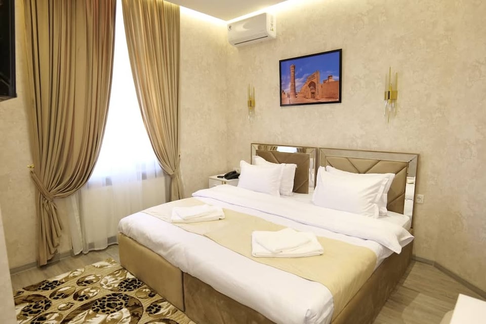 The Afrosiyob Hotel ligger i en provinspark i Samarkand. Afrasiyab-museet och Afrasiab tillhör de kulturella höjdpunkterna, och bland områdets turistattraktioner hittar du Ulugbeks observatorium och Samarkand nöjespark. Hotell i Samarkand med gratis frukost och säsongsöppen utomhuspoolThe Afrosiyob Hotel är ett hotell där gäster erbjuds tillgång till kyl i allmänt utrymme, en säsongsöppen utomhuspool och conciergetjänster. Dessutom erbjuds gratis frukostbuffé, gratis wi-fi i allmänna utrymmen och avgiftsfri parkering. Gäster får även tillgång till bekvämligheter som tvättmöjligheter, dygnet runt-öppen reception och en eldstad i lobbyn. Handdukarna byts på begäran The Afrosiyob Hotel erbjuder 18 luftkonditionerade rum med eldstad och gratis flaskvatten. 43-tums smart-tv med digitalkanaler. Badrummen har dusch, badrockar, tofflor och gratis toalettartiklar. Gäster har tillgång till gratis wi-fi (hastighet: 25+ Mbps). Byte av handdukar och byte av lakan kan fås på begäran. Städning sker dagligen. Detta hotell har bland annat en säsongsöppen utomhuspool.